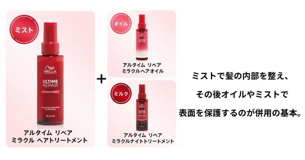 ミストは内部補修+軽さのバランスが特徴なので、仕上がりを邪魔せず、毎日のケアに取り入れやすいアイテムです。